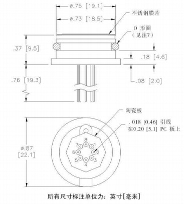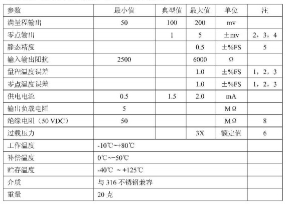 84 型压力传感器是一种经过补偿、且与介质兼容的硅压阻式传感器,其外壳采用316不锈钢封装结构。外界压力通过316不锈钢膜片及内部灌充硅油传递到传感器件敏感元件上。84型压力传感器可应用于低压场合,整体温度补偿范围为0℃-50℃,并采用O型封装结构。通过对陶瓷基座上的膜厚电阻进行激光修阻,可以实现对传感器温度补偿及零点偏差调整。陶瓷基底上还提供了一个经激光修正的增益调节电阻使传感器在经过外部差分电路放大后达到统一的输出值,并可控制在±1.0%互换性范围内。