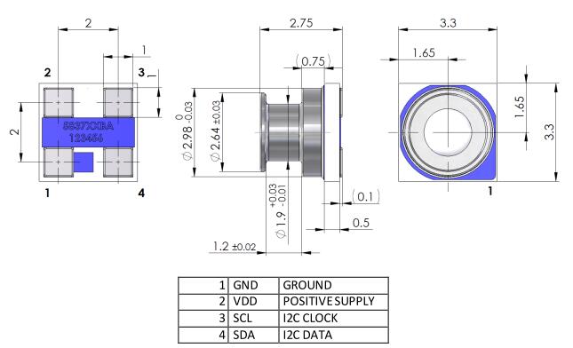 陶瓷 - 金属封装,3.3×3.3×2.5mm