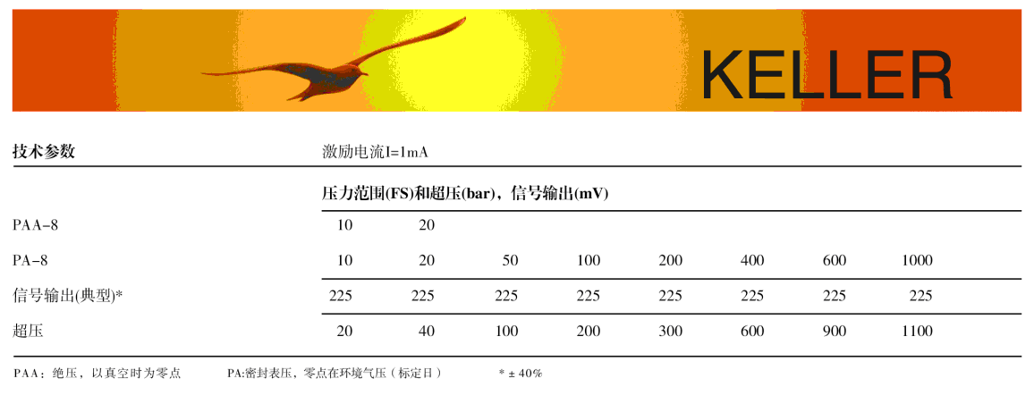 扩散硅keller压阻式KELLER压力传感器 PA-8/PAA-8