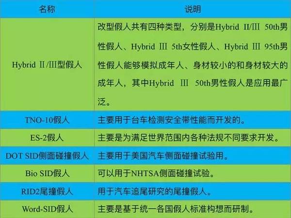 碰撞试验假人分哪些?